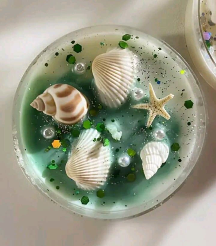 Each candle is made from natural soy wax, ensuring a clean and long-lasting burn. Adorned with delicate crystal and shell decorations, these candles not only fill your space with delightful scents but also serve as stunning home decor pieces.